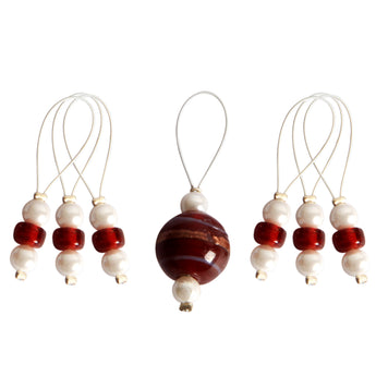 The Amaranth set has six ruby red markers and one larger pearly white one.