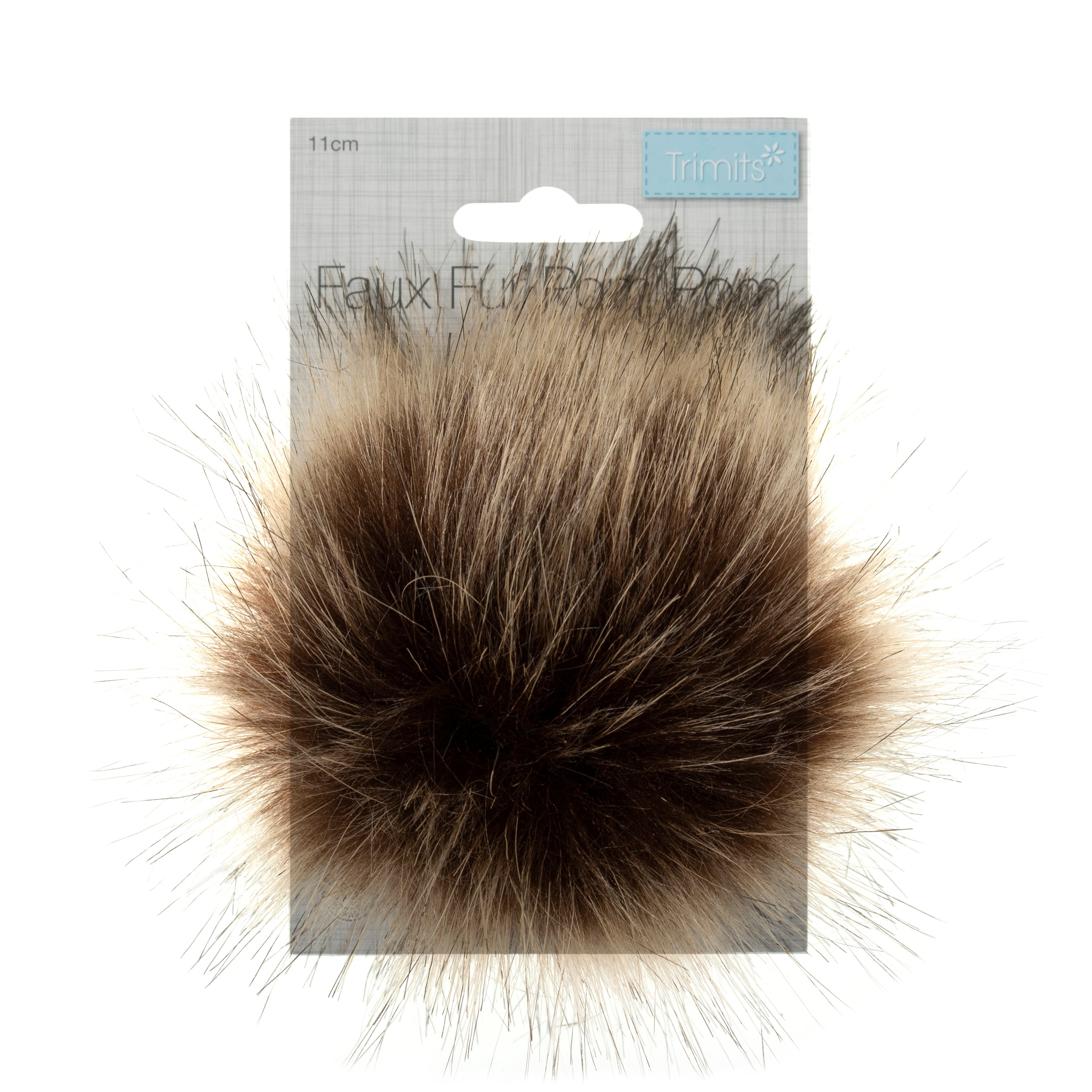 Trimits Faux Fur Pom Pom - (Brown Tipped) - 11cm