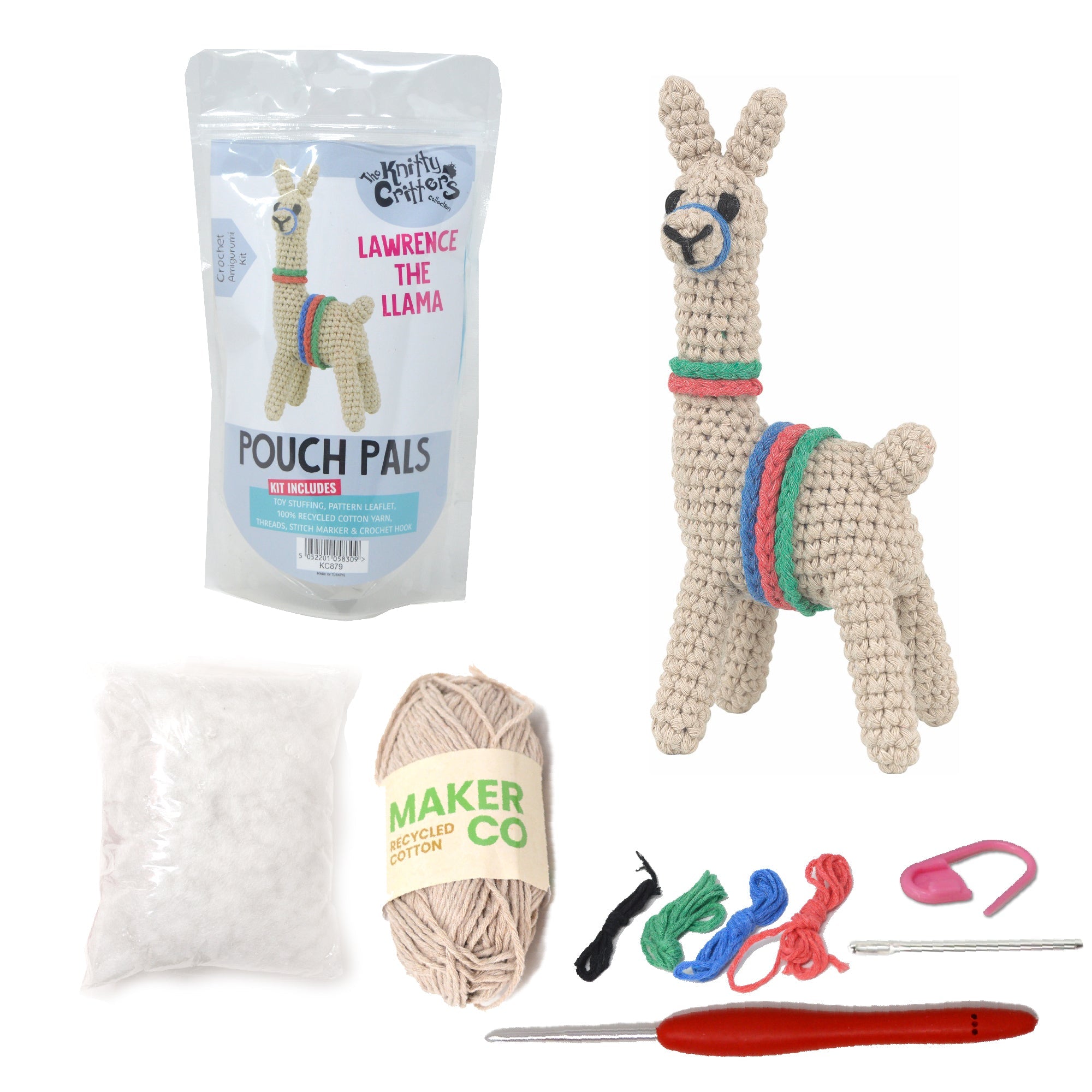 Knitty Critters Amigurumi Crochet Kit - Pouch Pals - Lawrence the Llama