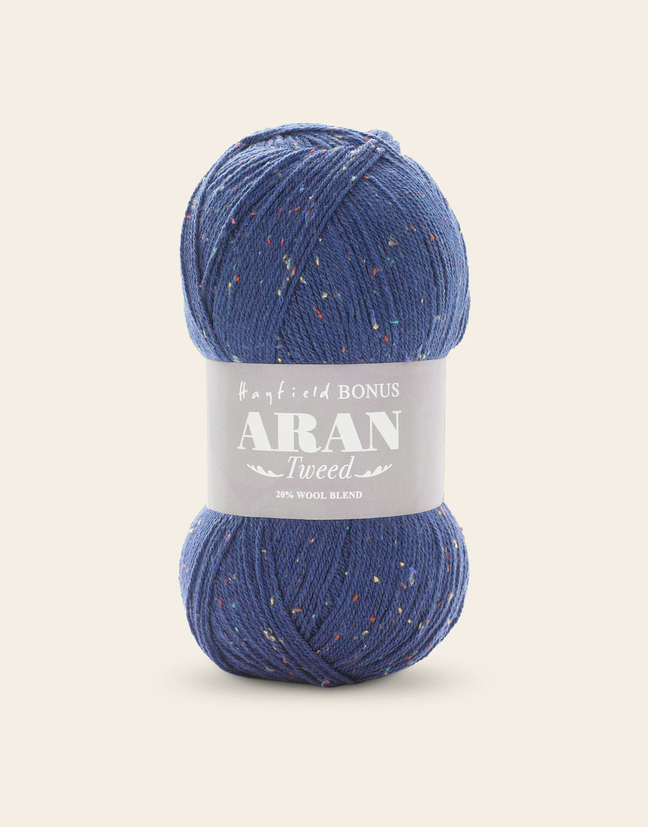 Sirdar's Hayfield Bonus Aran Tweed is one of the brand's most popular yarn collections and is an essential addition to the stash of any avid jumper maker. Offered in excellent value 400g balls, many of our customers find that just one or two balls are sufficient to knit the ideal aran jumper for their partner, niece, neighbour, or anyone else in need of warmth! With subtle flecks and coloured fibres that impart a lovely tweed texture to your projects, Bonus Aran Tweed is perfect for those looking to enhance their cabled designs. It is machine washable and composed of a fantastic blend of wool, acrylic, and viscose, ensuring you don’t have to compromise on warmth and wearability for the sake of easy care – what more could you want?