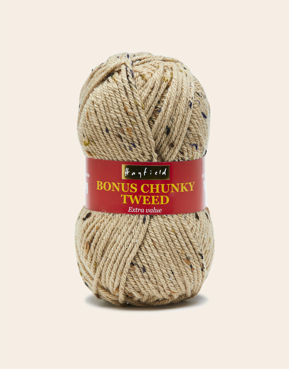 Sirdar Bonus Chunky Tweed is an exceptionally popular yarn made from 96% acrylic and 4% viscose, offered in a fantastic variety of colours, ranging from gentle natural tones to more vibrant shades. Despite its affordable price, Sirdar's Bonus range is one of the finest yarns on the market, being softer and less scratchy than many alternatives. Suitable for both knitting and crochet projects, Bonus Chunky Tweed is machine washable and adheres to standard chunky weight tension, making it the perfect chunky yarn! Now available in a selection of traditional tweed blends, featuring a variety of textured tweed effects, Bonus Chunky Tweed is an excellent option for all your family knitting needs.