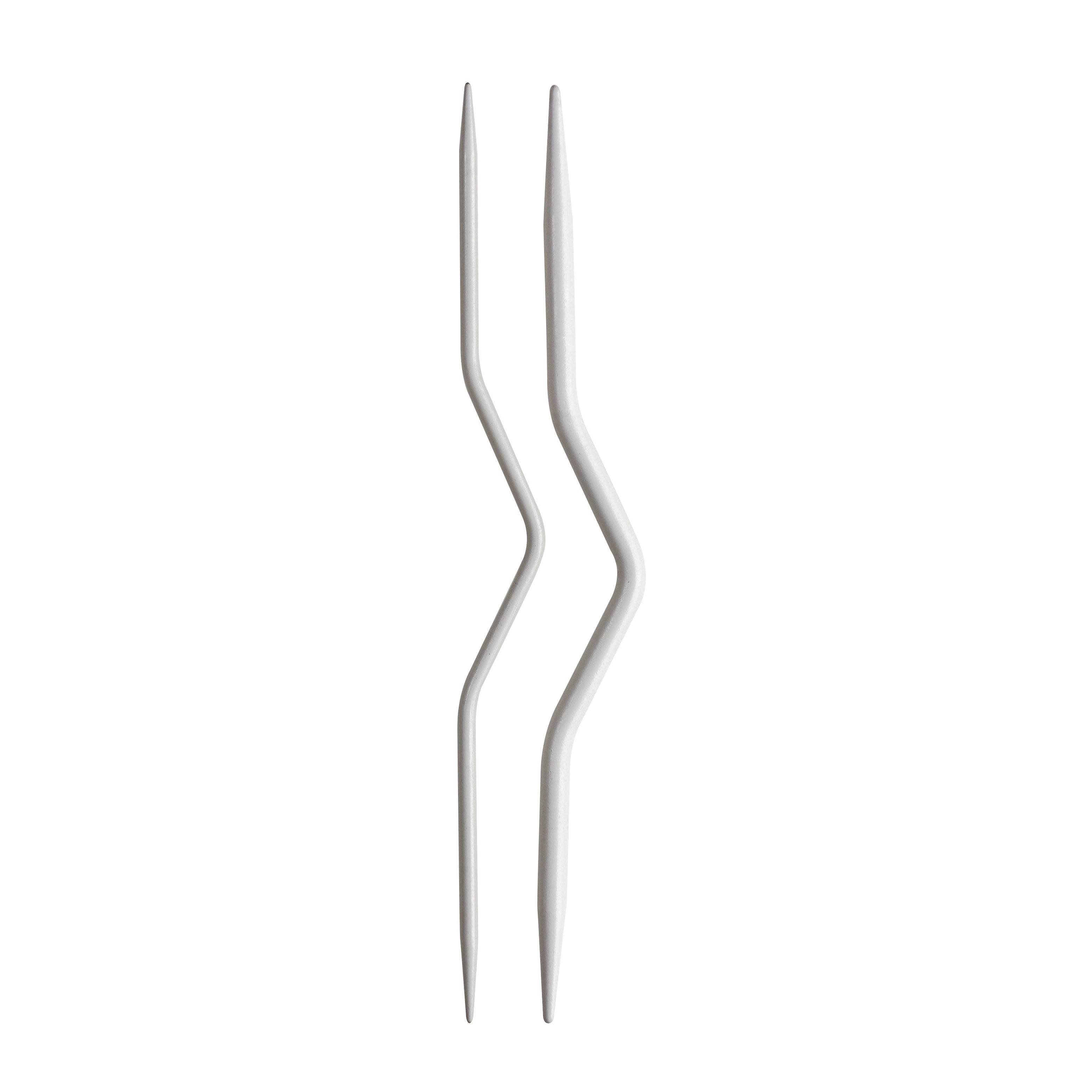 These cranked cable needles feature a v-shaped centre, so the needle comfortably hangs from your work, making it less likely that you'll slip and lose your stitches. Pack of 2 in sizes 2.50mm and 4.00mm.