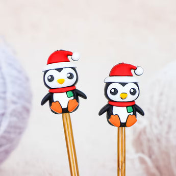 These adorable Christmas Penguin-shaped point protectors fit snugly over needle tips, preventing stitches from slipping off when your work is put down, while also safeguarding the points when they’re not in use.