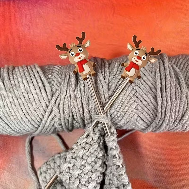 These adorable Christmas Reindeer-shaped point protectors fit snugly over needle tips, preventing stitches from slipping off when your work is put down, while also safeguarding the points when they’re not in use.