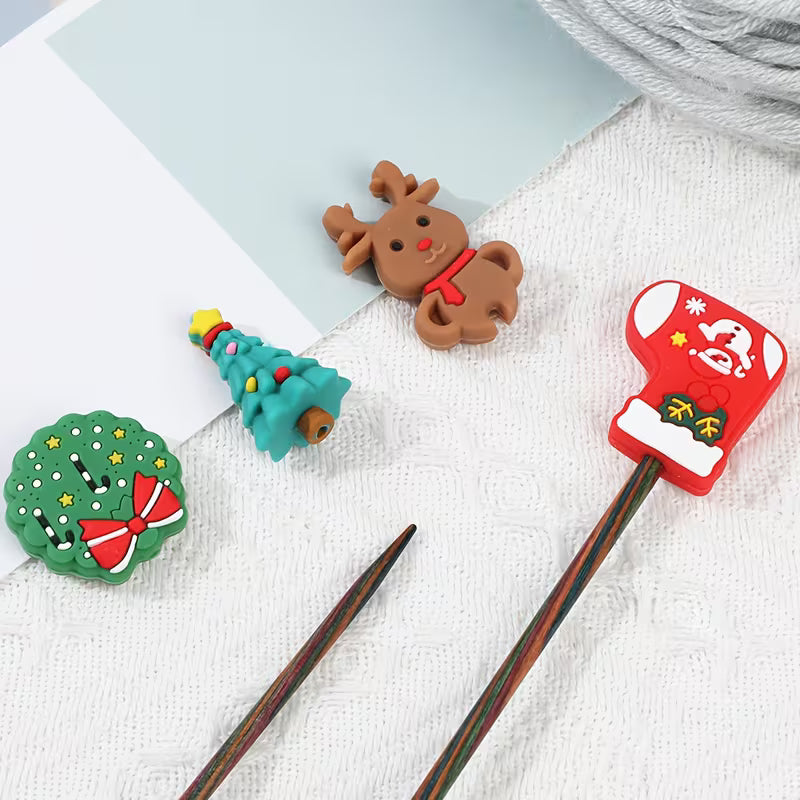 These adorable Christmas-shaped point protectors fit snugly over needle tips, preventing stitches from slipping off when your work is put down, while also safeguarding the points when they’re not in use.