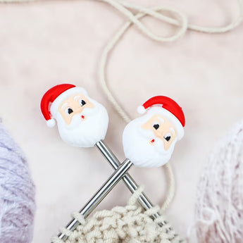 These adorable Santa-shaped point protectors fit snugly over needle tips, preventing stitches from slipping off when your work is put down, while also safeguarding the points when they’re not in use.