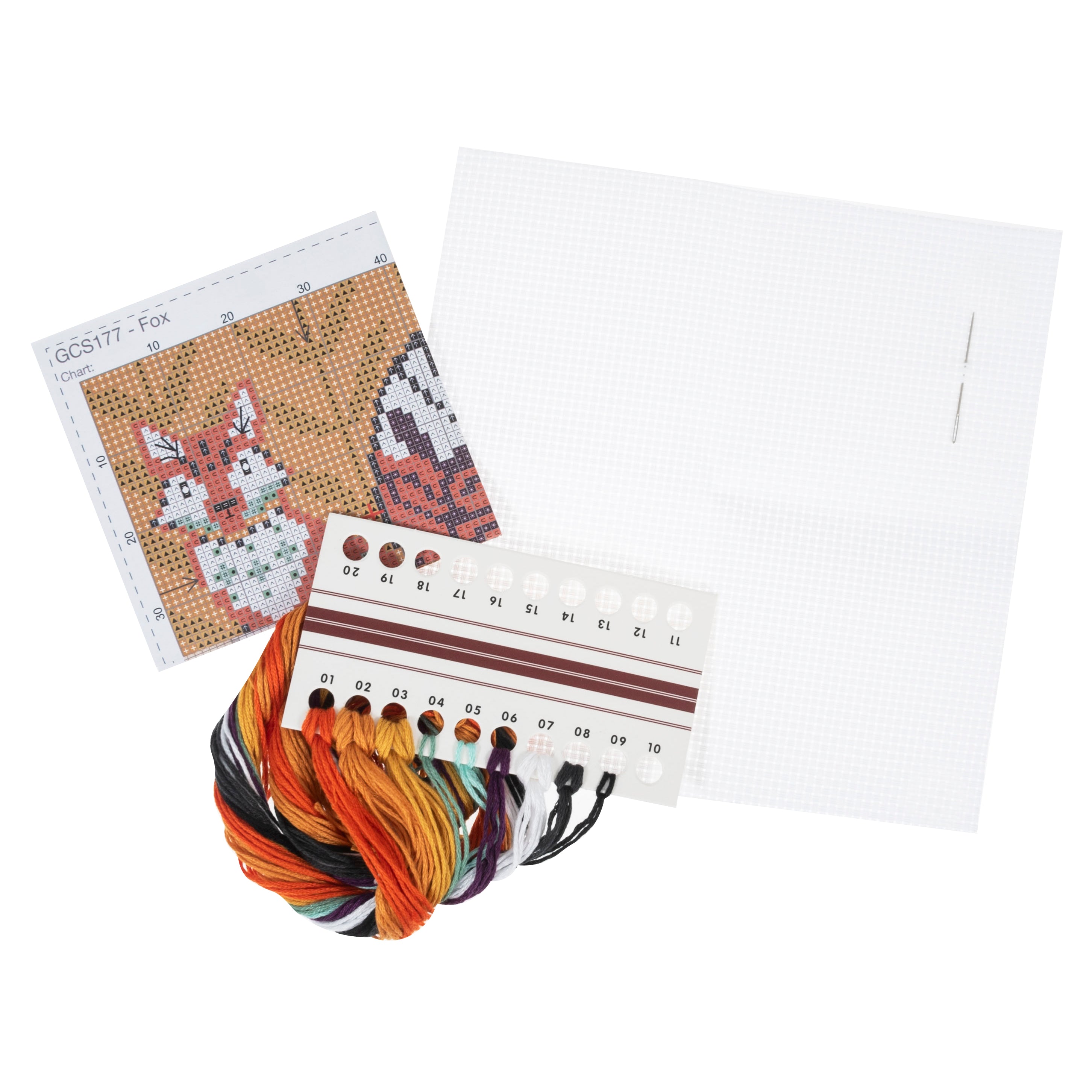 Counted cross stitch design. Kit includes: 11 count, white, cotton, aida fabric; pre-sorted, stranded, cotton thread; needle; printed colour coded design and easy to follow instructions. Approximate finished size: Fabric: (w/h) 17 x 17cm. Size of stitched design: (w/h) 12.2 x 12.7cm. Hand wash in cold water. Do not tumble dry.
