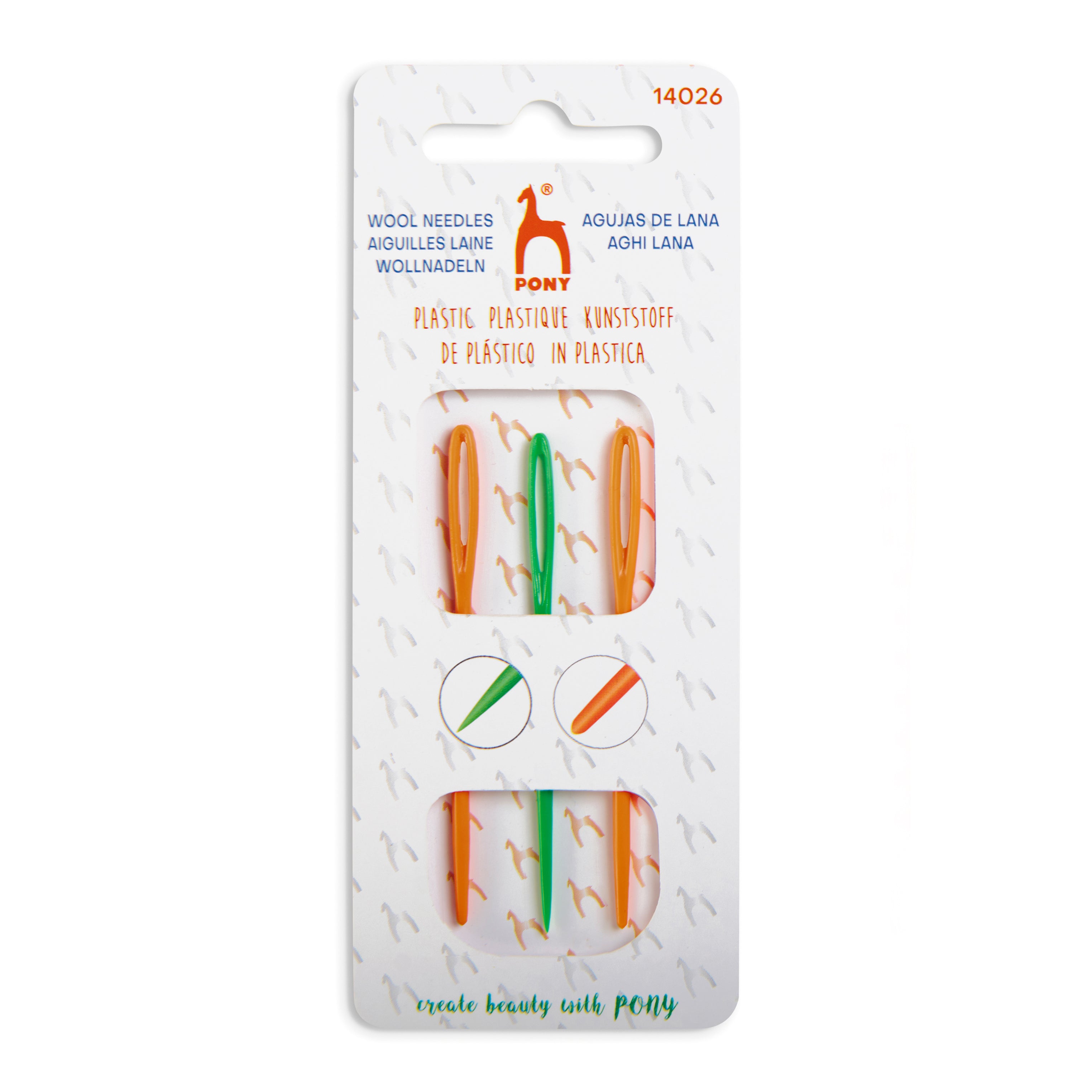 Pony Hand Sewing Needles - Plastic - 2 Blunt, 1 Sharp - Pack of 3