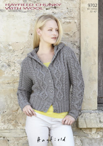 Sirdar 9702 Hayfield Chunky with Wool Ladies Hoodie (Downloadable PDF)