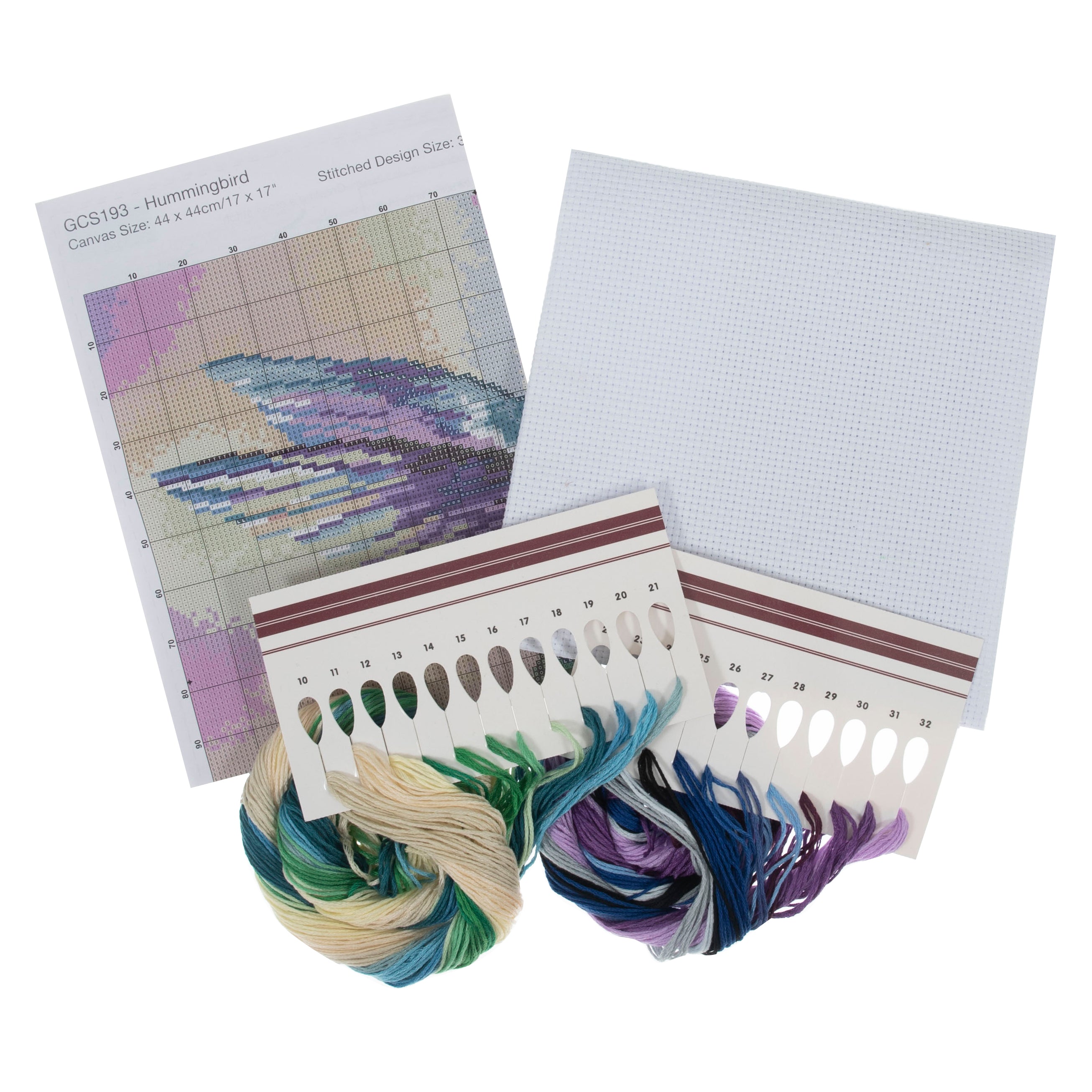 • Kit includes: 11 count, white, cotton, aida fabric; pre-sorted, stranded, cotton thread; needle; printed colour coded design and easy to follow instructions.