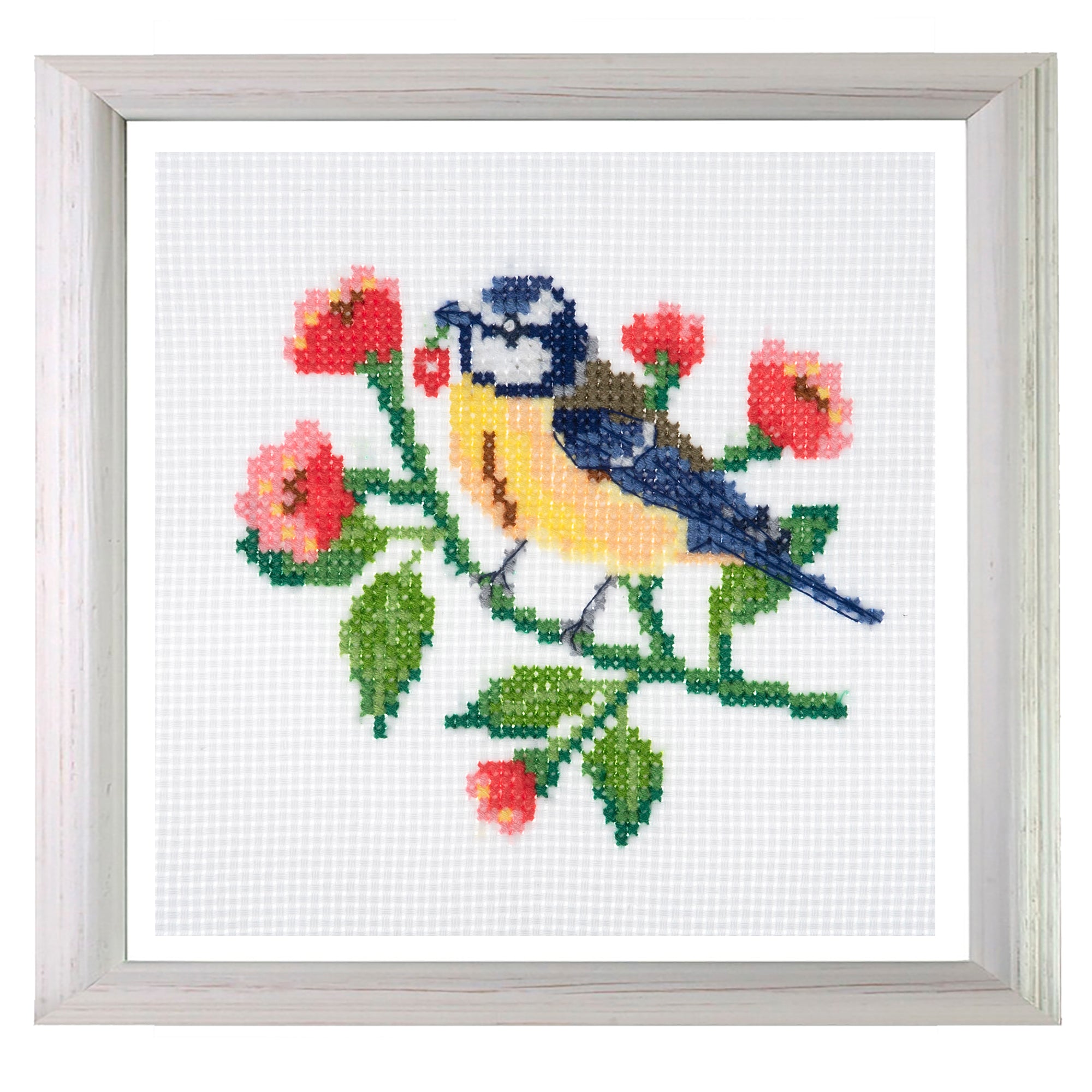 Counted cross stitch design. Kit includes: white, cotton, 11 count aida fabric; pre-sorted, 6 strand, polyester embroidery threads; needle; printed, colour coded design and instructions in 6 languages (EN/FR/DE/ES/IT/NL). Size of fabric: (w/h) 17 x 17cm Size of stitched design: (w/h) 11 x 13.2cm. Do not dry clean. hand wash in cold or warm water. Use a neutral detergent.