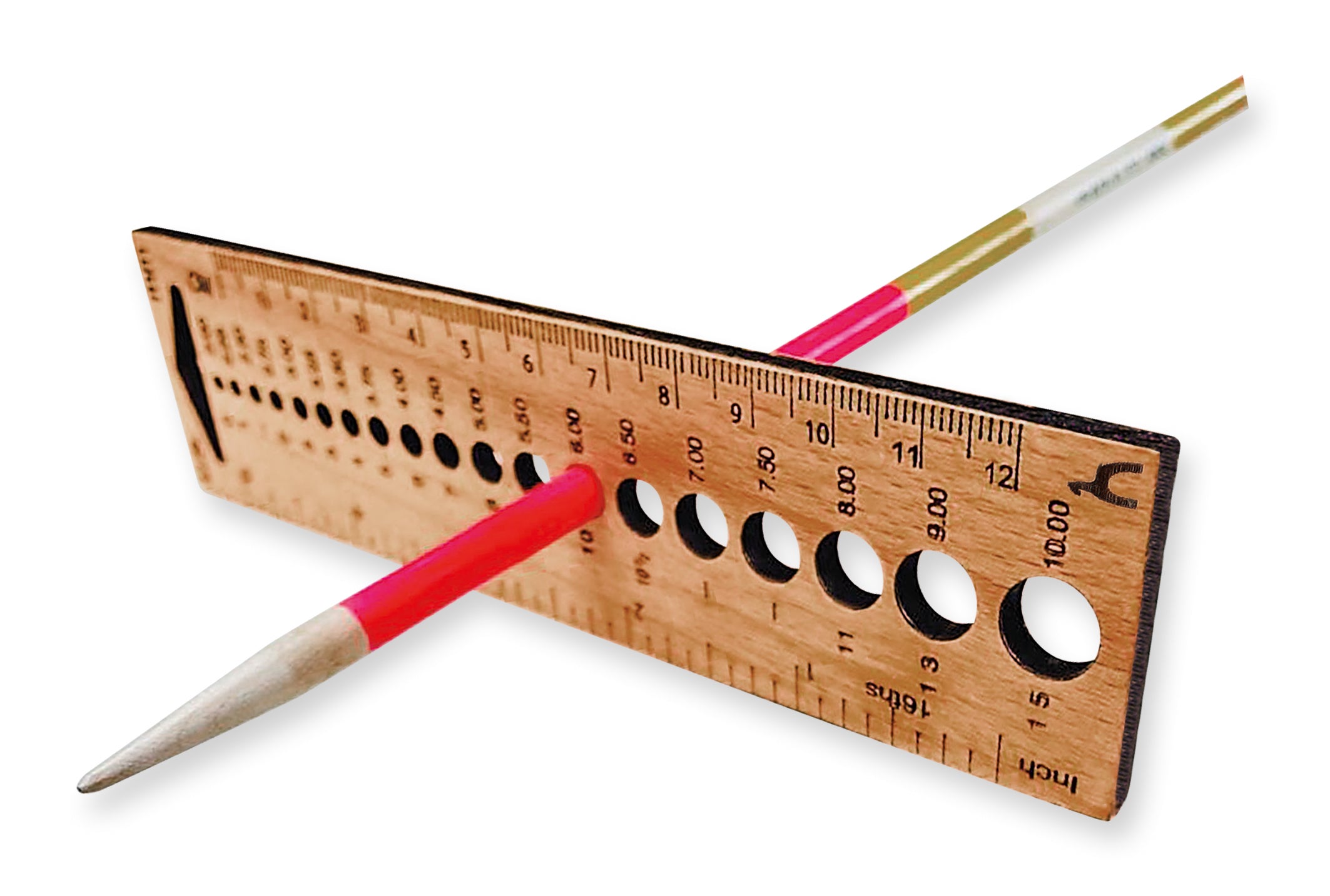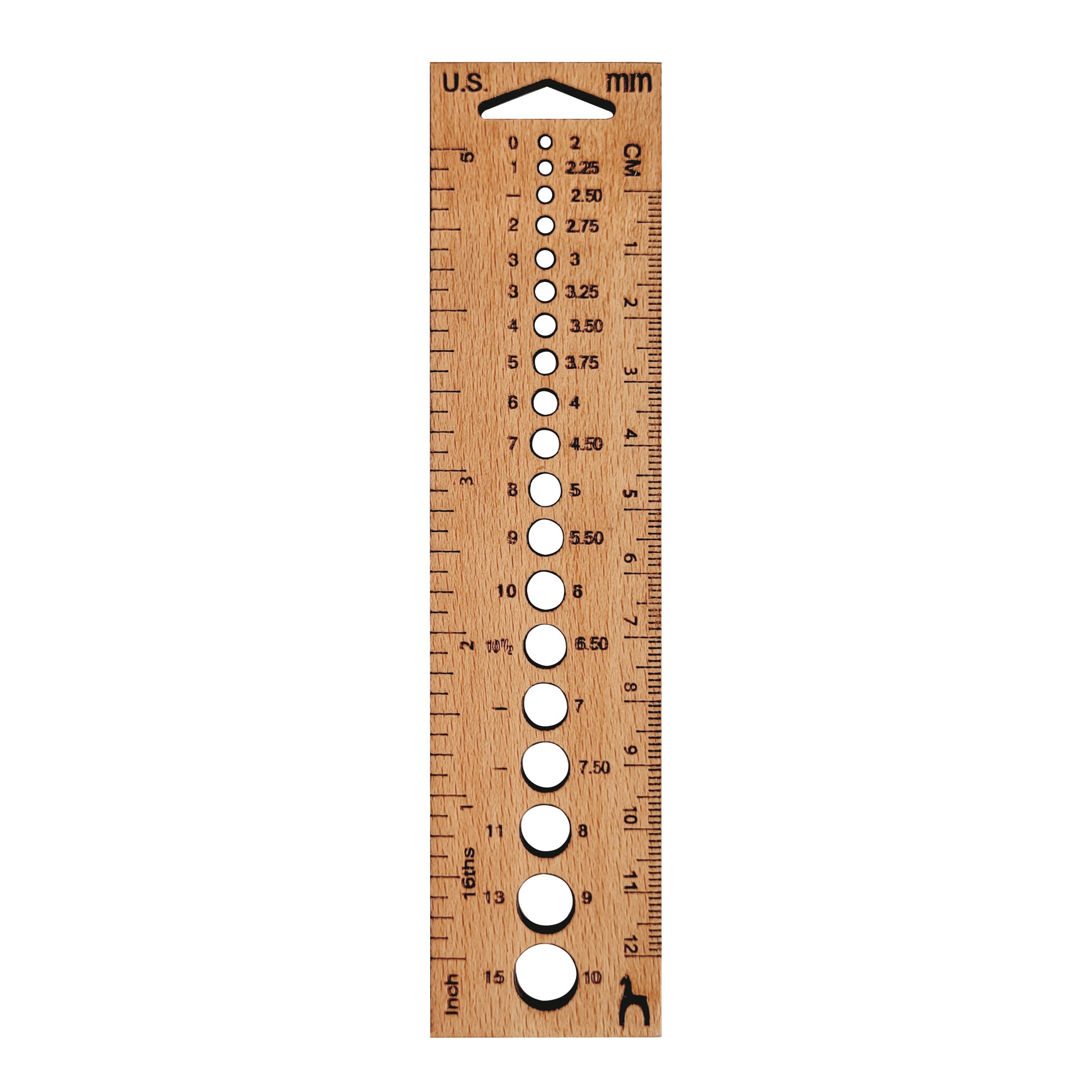 The rectangular knitters gauge is an ideal all in one measuring instrument. Offers both metric and U.S. markings for knitting needles, from 2 to 10mm.