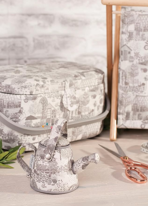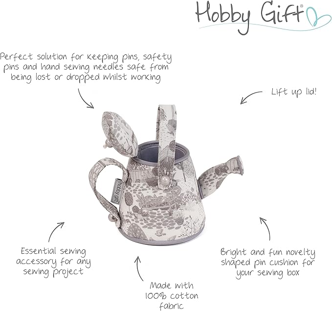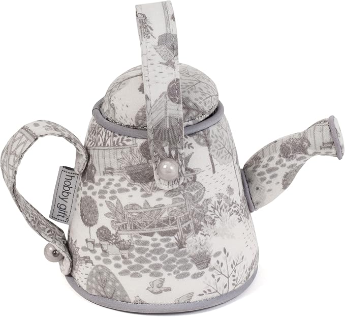 This delightful novelty watering can design pincushion is crafted from high-quality cotton fabric, making it both durable and aesthetically pleasing. It is perfect for holding your pins and needles while adding a charming touch to your sewing space. To maintain its appearance, please note that it is recommended to spot clean only. The dimensions of the item are (diameter/width/height) 9cm x 16cm x 13cm, making it a compact and practical accessory for any sewing enthusiast. Whether you are an experienced seamstress or just starting out, this pincushion is sure to be a valuable addition to your collection.