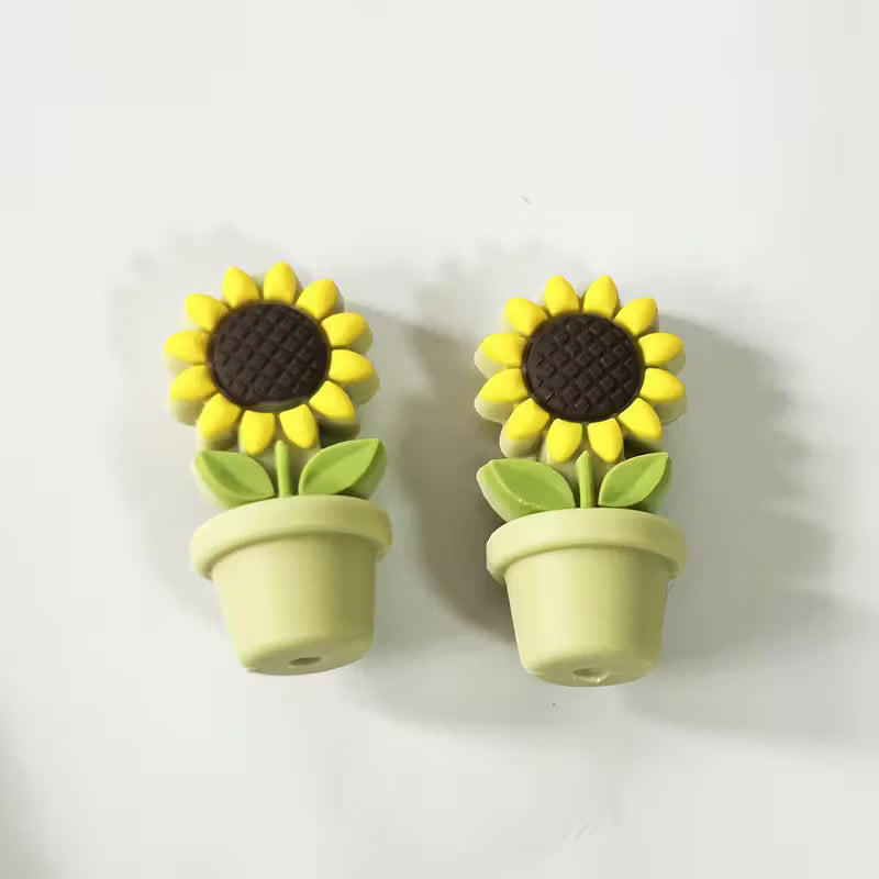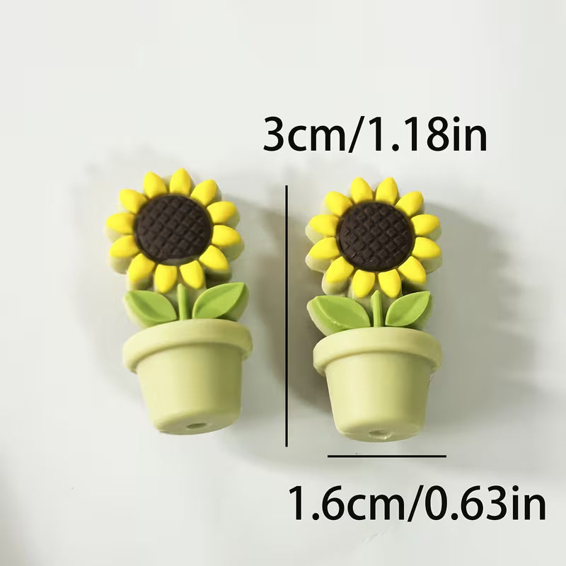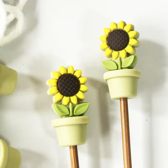 These adorable Sunflower-shaped point protectors fit snugly over needle tips, preventing stitches from slipping off when your work is put down, while also safeguarding the points when they’re not in use.