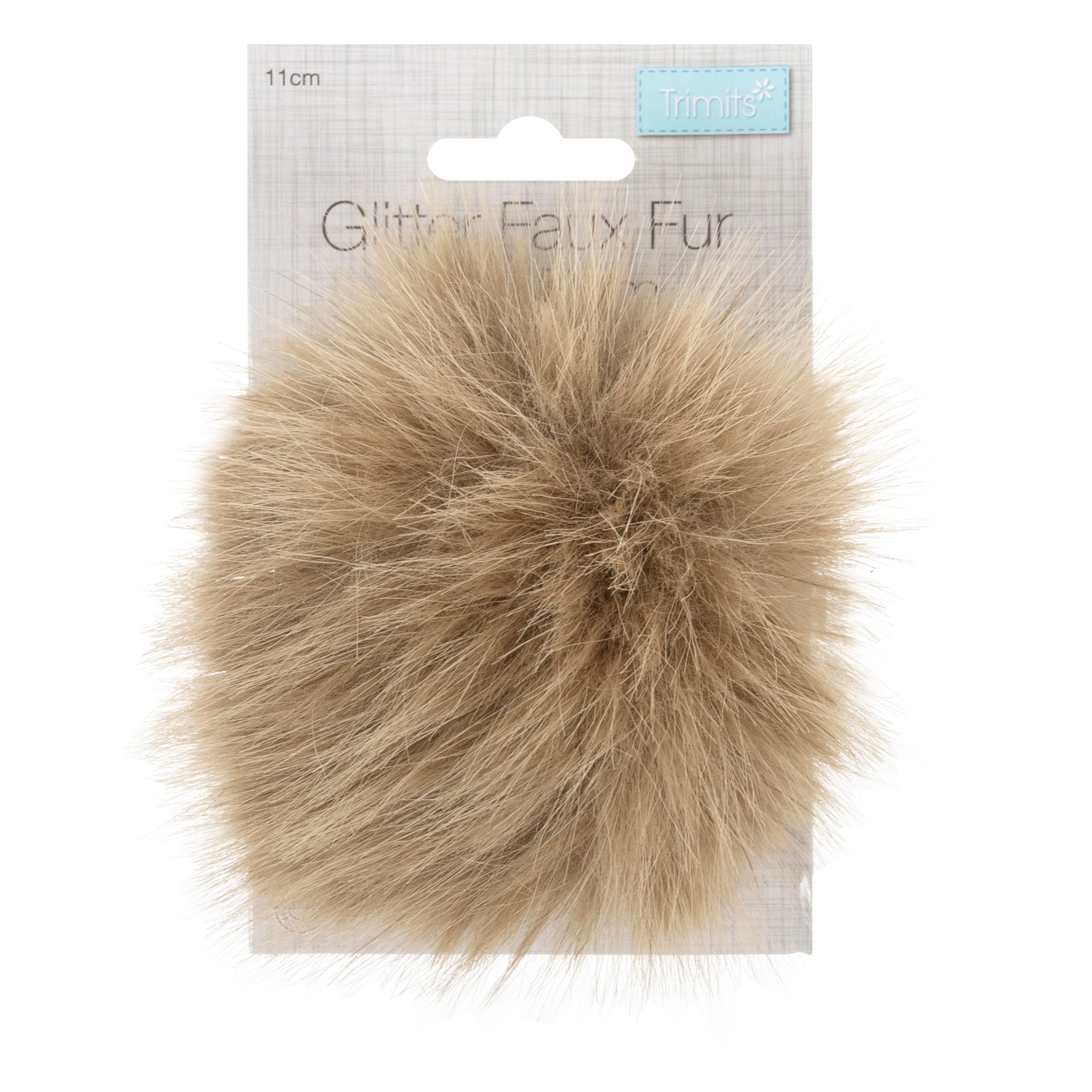 Trimits Faux Fur Glitter Pom Pom - (Cinnamon) - 11cm