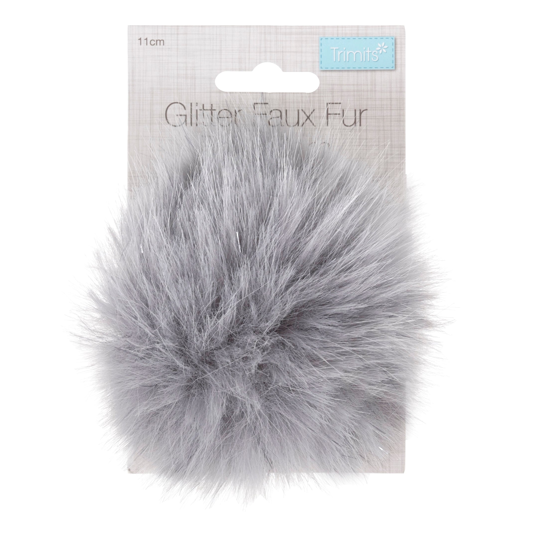 Trimits Faux Fur Glitter Pom Pom - (Grey) - 11cm