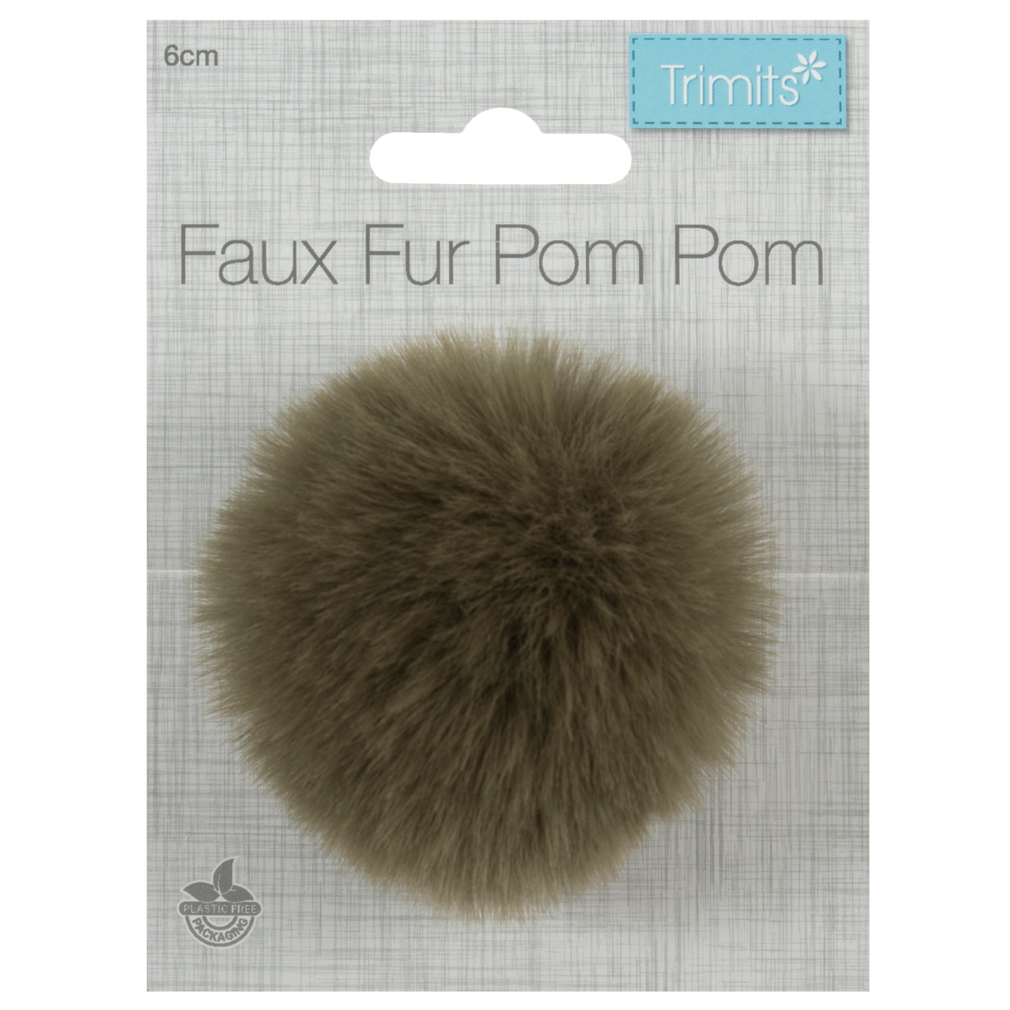 Trimits Faux Fur Pom Pom - (Khaki) - 6cm