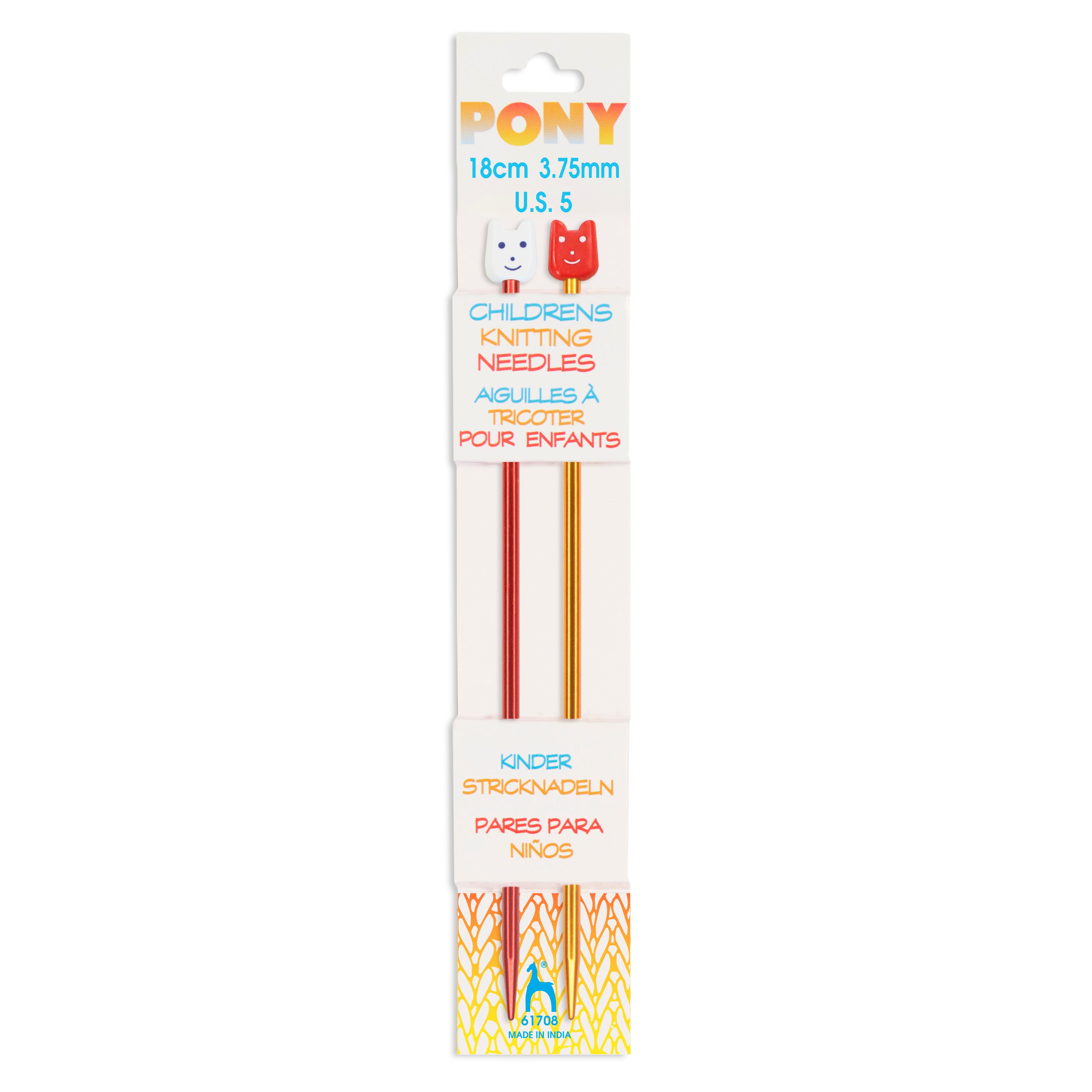 Pony Children's Single Point Knitting Needles - Coloured Aluminium - 18 cm (3.75mm)