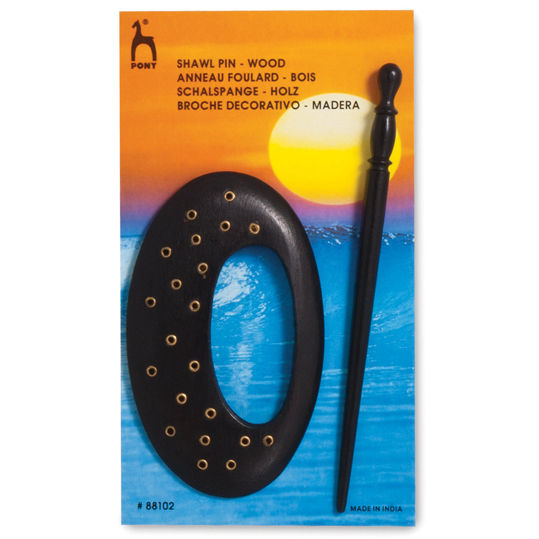 Pony offers a fantastic selection of decorative wooden brooches and pins, perfect for adding a stylish touch to shawls and knitted garments.