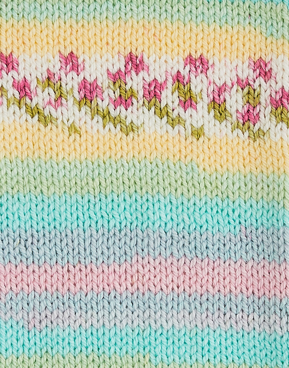 Sirdar Hayfield Baby Blossom Chunky is a stunning self-patterning yarn designed for babies and young children, featuring charming little flowers that emerge in stripes as you knit! Baby Blossom is available in a delightful selection of soft pastel hues, including baby blue, pink, and a lovely mix of lilac and yellow. This yarn is not only enjoyable to knit with but also a joy to wear. Hayfield Baby Blossom Chunky is machine washable and compatible with all of Sirdar's chunky patterns.