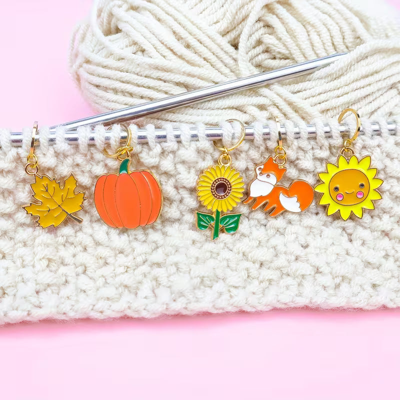 Add a splash of autumnal vibe to your accessory collection with these fun novelty Stitch Marker collection! This quirky assortment of colourful markers is sure to brighten your day!