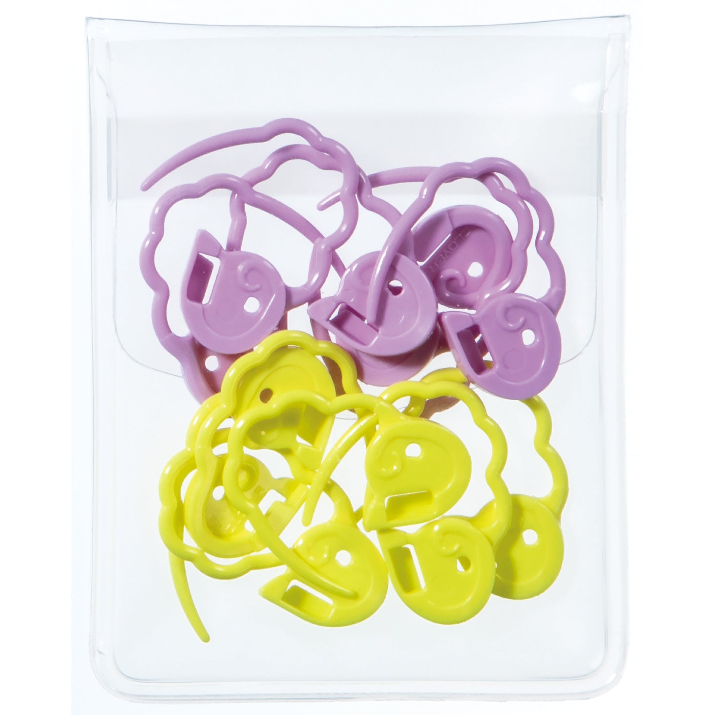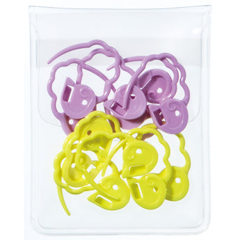 This set from Clover includes 12 large lockable stitch markers that can also be used in an unlocked position. Their wavy design helps to prevent stitches from becoming stretched. A convenient compact case is included for easy storage.