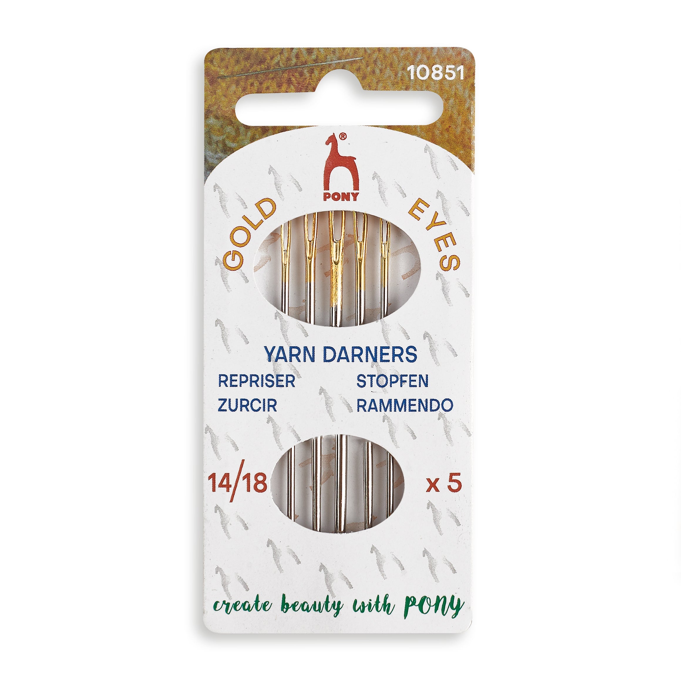 Pony Gold Eye Hand Sewing Needles - Yarn Darners - Sizes 14-18 - Pack of 5