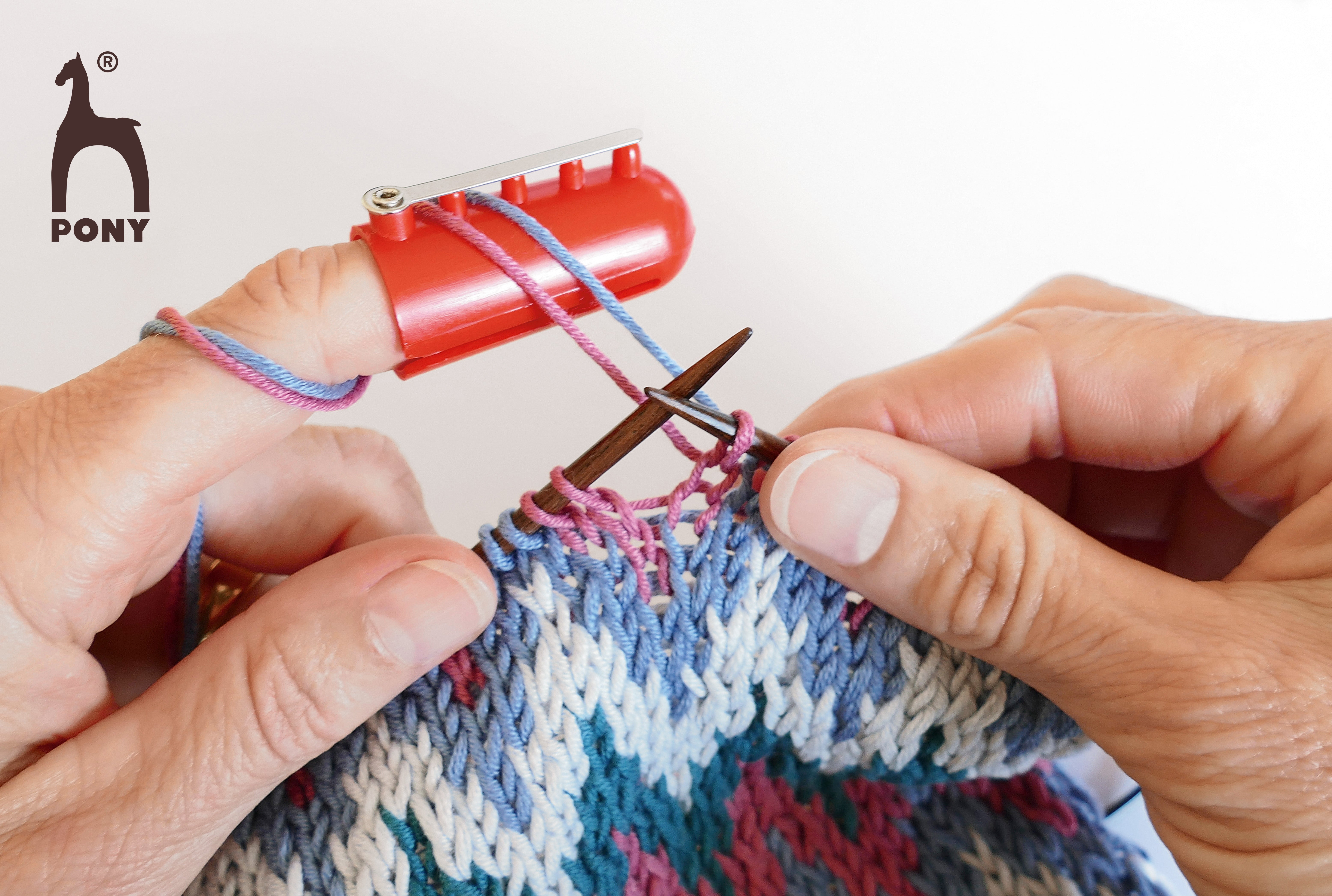 A clever little device designed to simplify Fair Isle knitting, Pony's Knitting Thimble features multiple sections for different colours, enabling you to explore your pattern creativity to the fullest! With a robust metal arm to securely hold your strands in position, this thimble is ideal for keeping colours distinct and accelerating your crafting process.