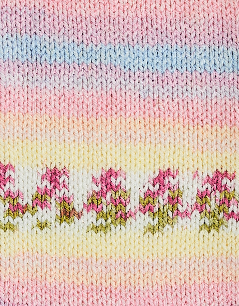 Sirdar Hayfield Baby Blossom Chunky is a stunning self-patterning yarn designed for babies and young children, featuring charming little flowers that emerge in stripes as you knit! Baby Blossom is available in a delightful selection of soft pastel hues, including baby blue, pink, and a lovely mix of lilac and yellow. This yarn is not only enjoyable to knit with but also a joy to wear. Hayfield Baby Blossom Chunky is machine washable and compatible with all of Sirdar's chunky patterns.