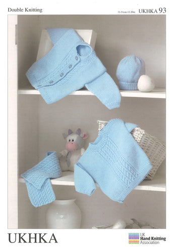 UKHKA 93 Baby Sweater, Cardigan, Hat and Scarf in DK (Leaflet)